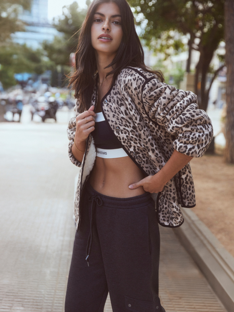 Анималистичный принт — главный герой коллекции — дерзкий, но женственный. Именно он привлекает внимание, эффектно сочетаясь с палитрой коллекции: оттенками экрю, серого и черного.