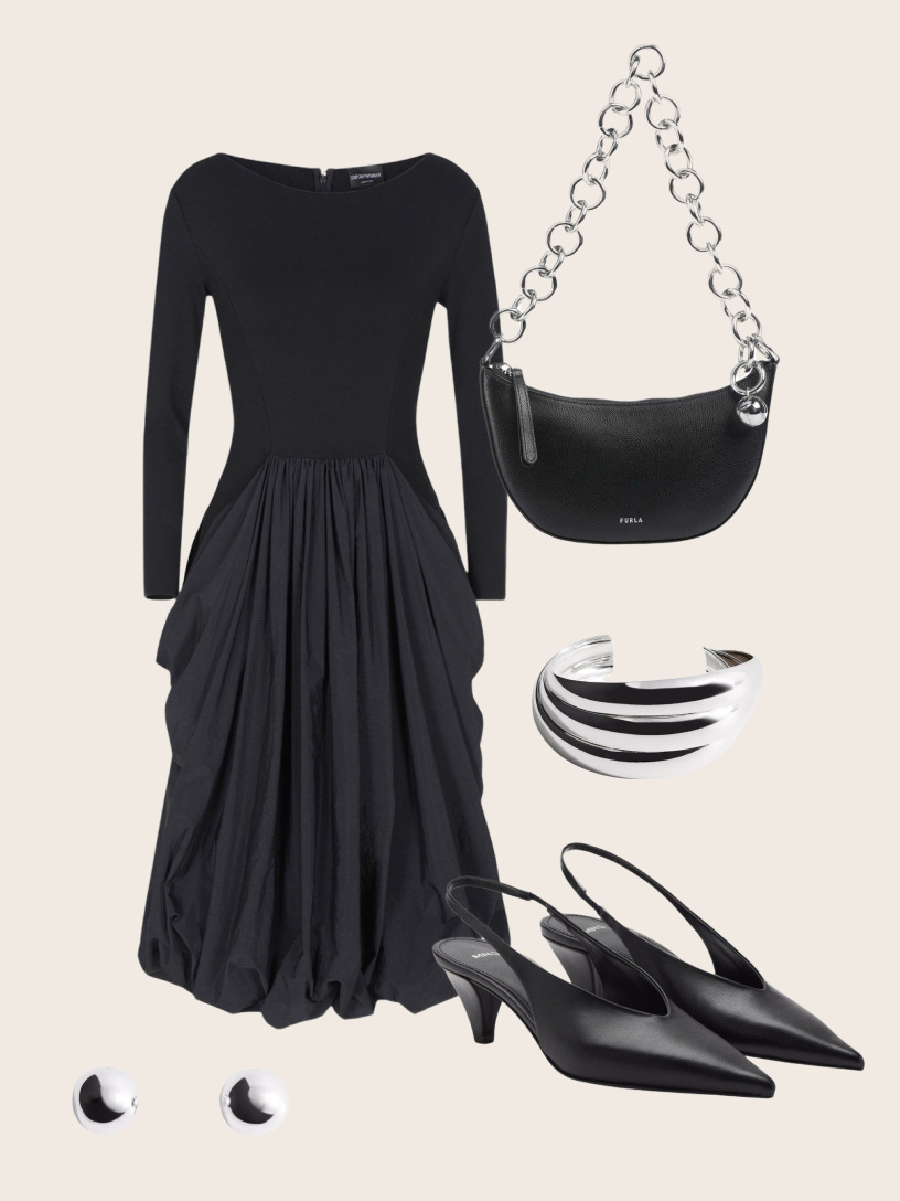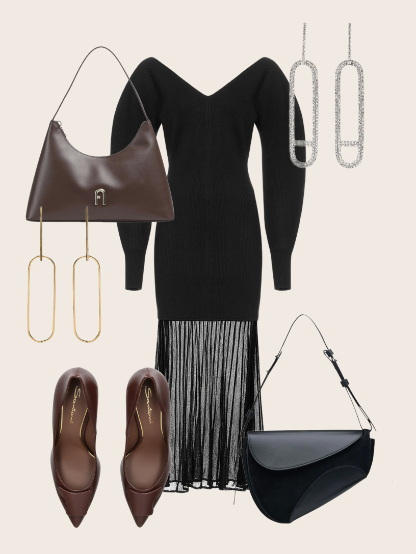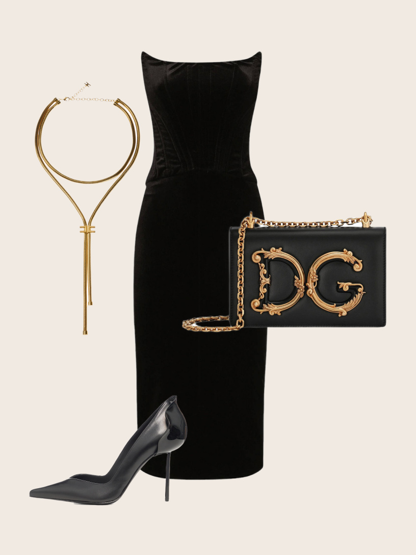 Маленькое черное платье не уходит со сцены — оно играет новыми ролями. У Prada эта модель становится символом свободы: расслабленные силуэты и мягкие швы разбивают привычную строгость. Saint Laurent возвращает культовую версию — обтягивающее платье-футляр с драматичным вырезом и игрой света на ткани. А Versace предлагает коктейльный вариант из бархата.