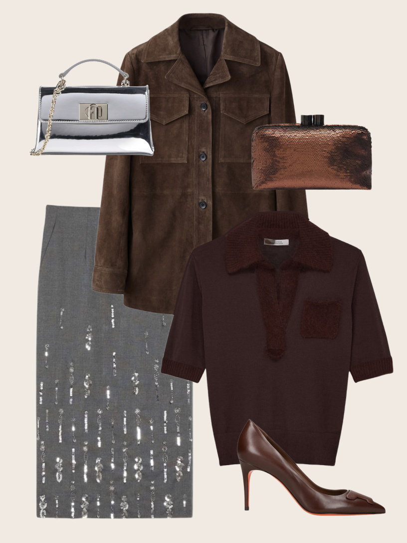 Как носить: юбка-карандаш больше не замыкается в рамках «офисного» гардероба. Ее носят с объемным жакетом и широким ремнем — для эффекта сильного силуэта, с кожаным топом или кружевной блузкой — чтобы добавить дерзости, или же с прозрачным верхом и вечерними аксессуарами — превращая строгую классику в часть вечернего выхода.