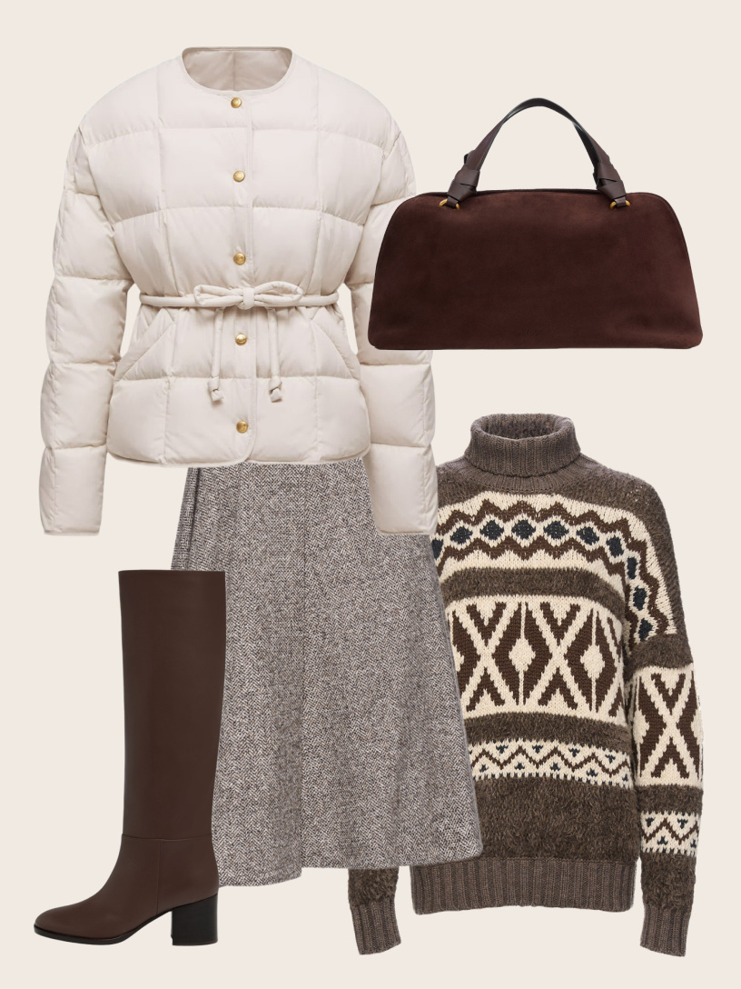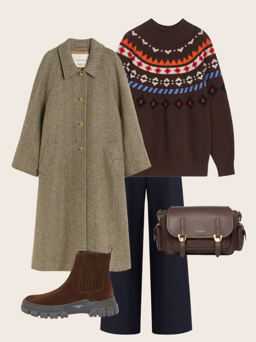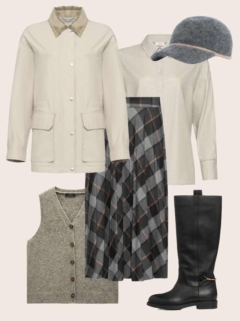 Осень–зима 2025–2026 возвращает нас в британскую деревню — к аристократическому country chic. Это твидовые пальто, охотничьи жакеты, клетка, мягкие кашемировые накидки и куртки-плащи для прогулок по холодным аллеям. Главное — чувство наследия.