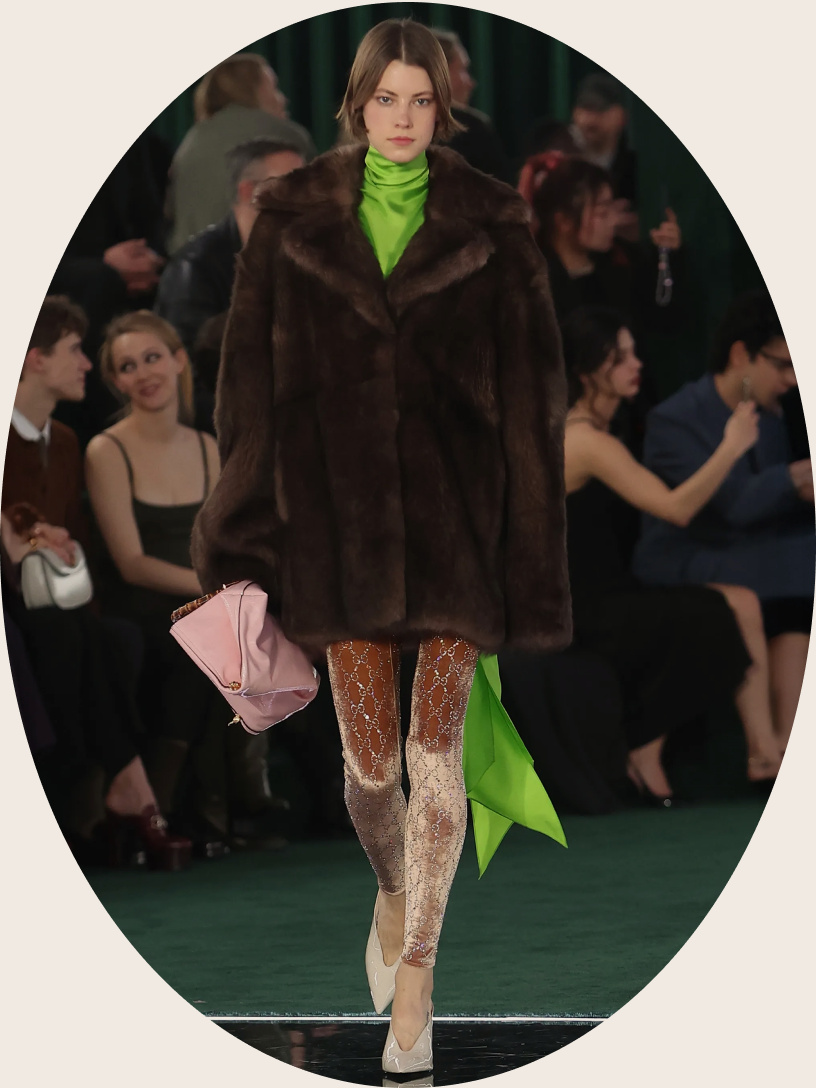 Бренды выводят легинсы на подиум как полноценную часть костюма — теперь это не только комфорт, но и стиль. Их сочетают с твидовыми юбками, структурированными жакетами и меховыми пальто, доказывая, что «настоящие» брюки теперь не обязательны.