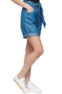 Шорты NILSON с завышенной талией из коллекции Foreverland от iBLUES. Модель прямого кроя с 5-ю карманами, частично эластичной талией, застежкой на молнию и пуговицей. Изделие выполнено из джинсовой ткани с добавлением хлопка и льна.