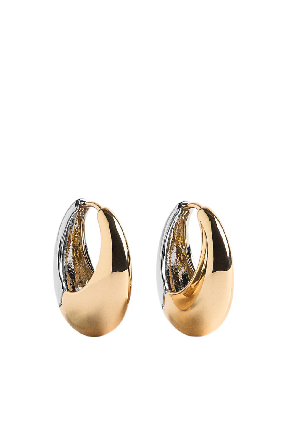 Двухцветные серьги-кольца овальной формы.