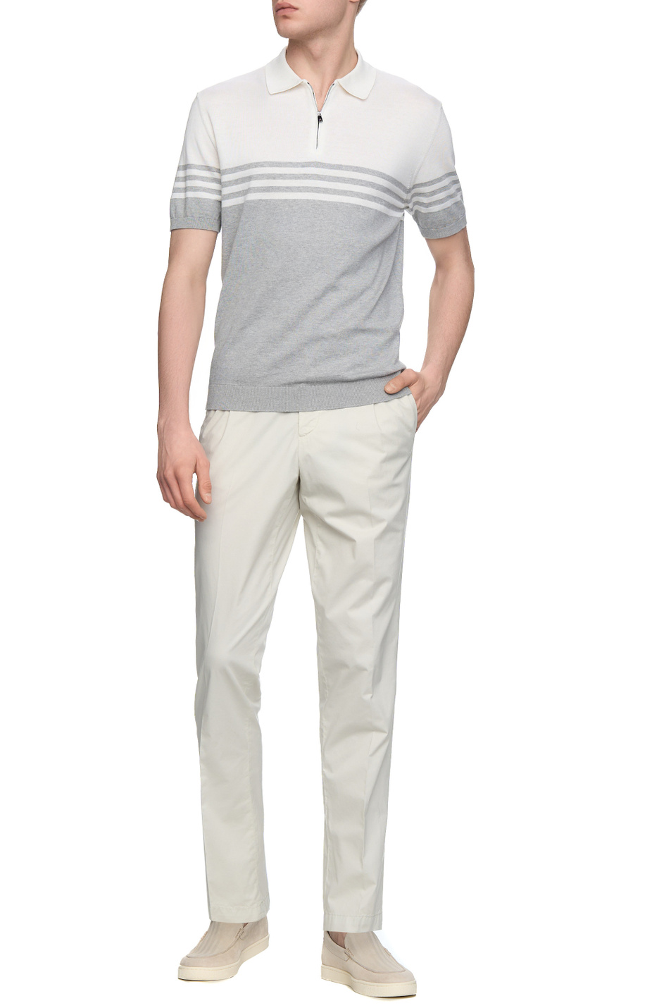 Это элегантное поло станет изысканным элементом вашего гардероба. Модель с отложным воротником изготовлена из высококачественной смеси хлопка и нежного шелка, обеспечивающей максимальный комфорт в носке. Полосатый паттерн придает дизайну динамичность и современный вид, делая это поло отличным выбором для повседневного образа.