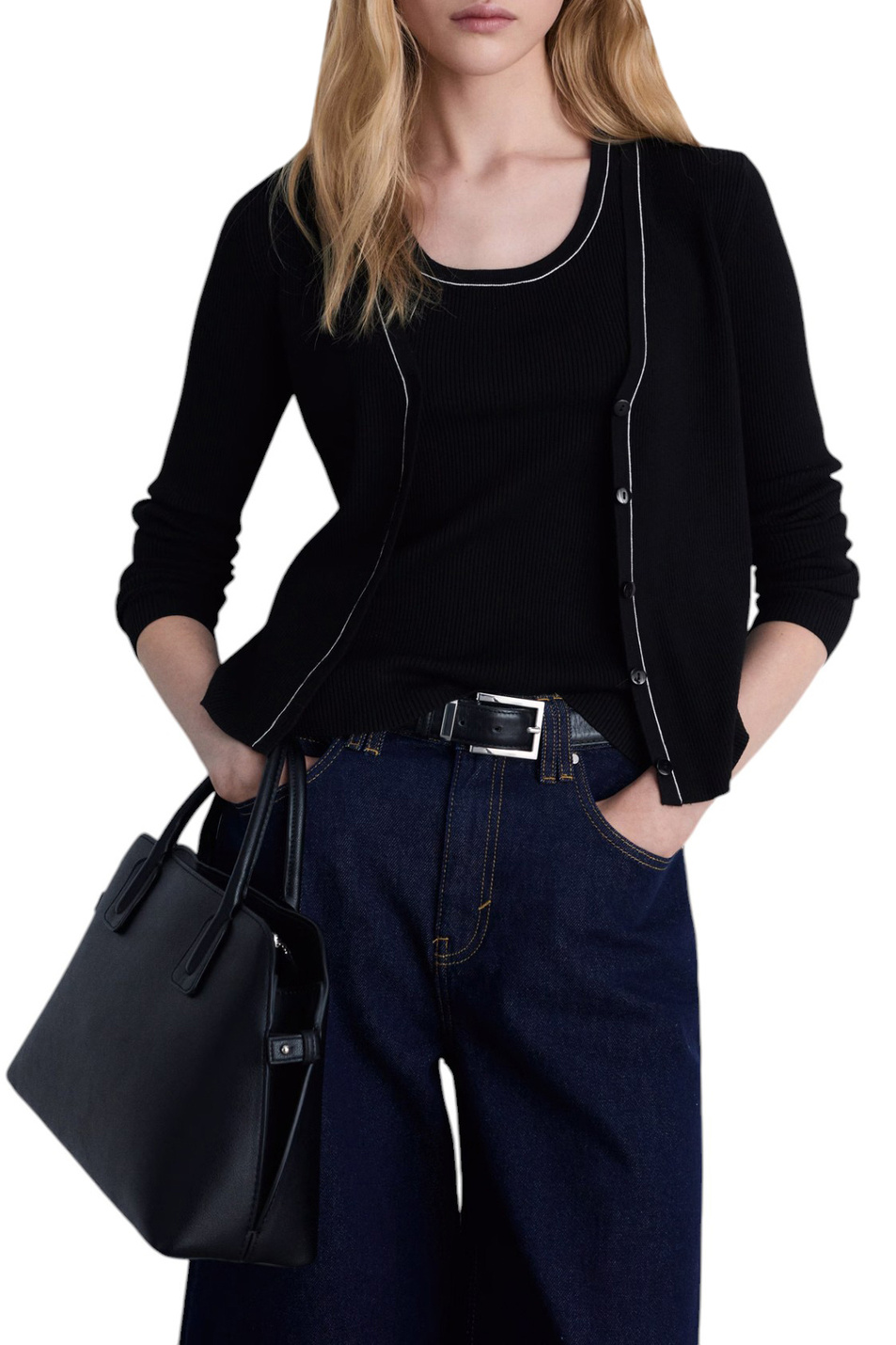 Облегающий крой. V-образный вырез. Длинный рукав. Застежка на пуговицы спереди.
