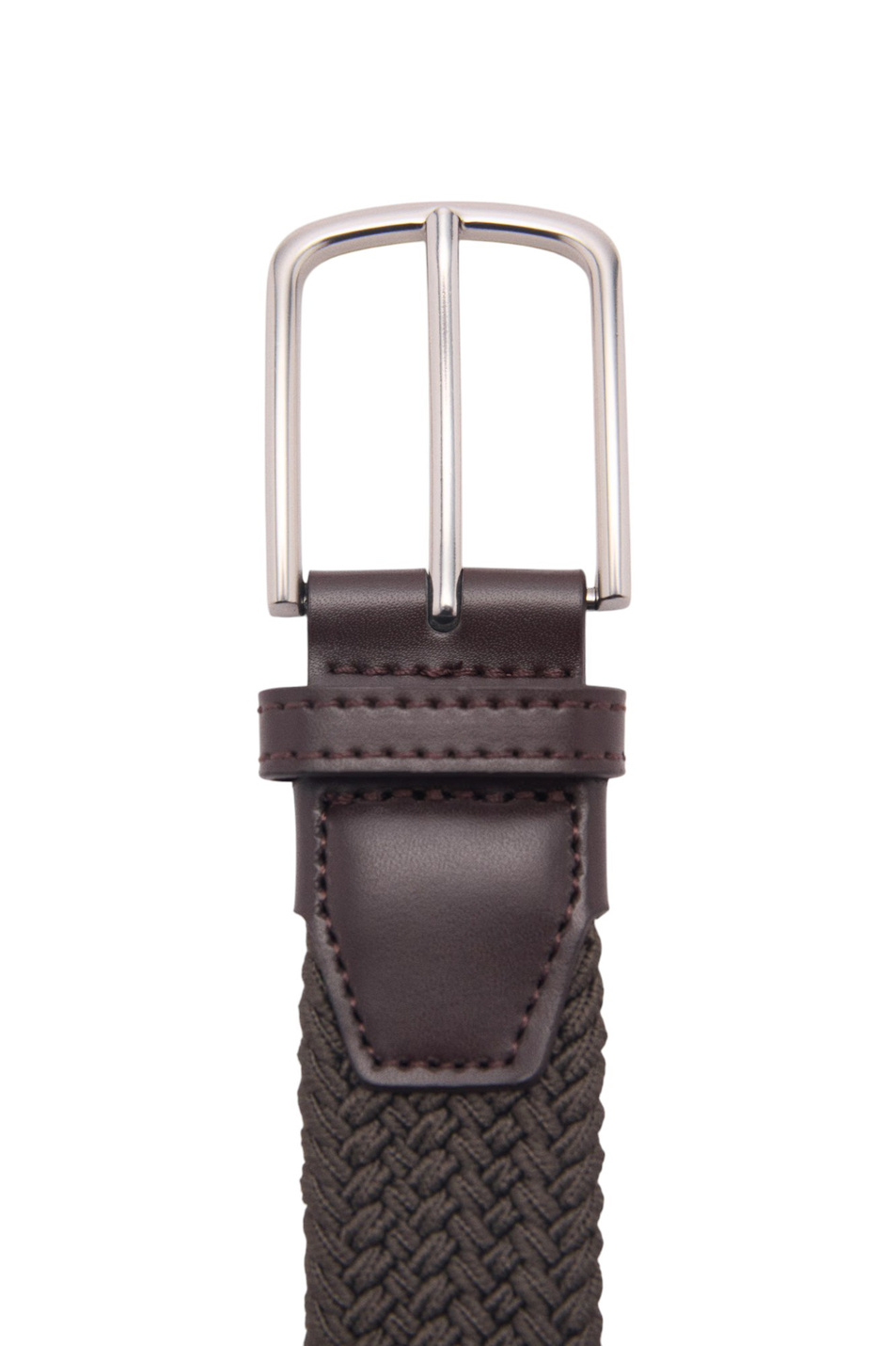 Плетеный ремень с вставками из натуральной кожи и металлической пряжкой.
