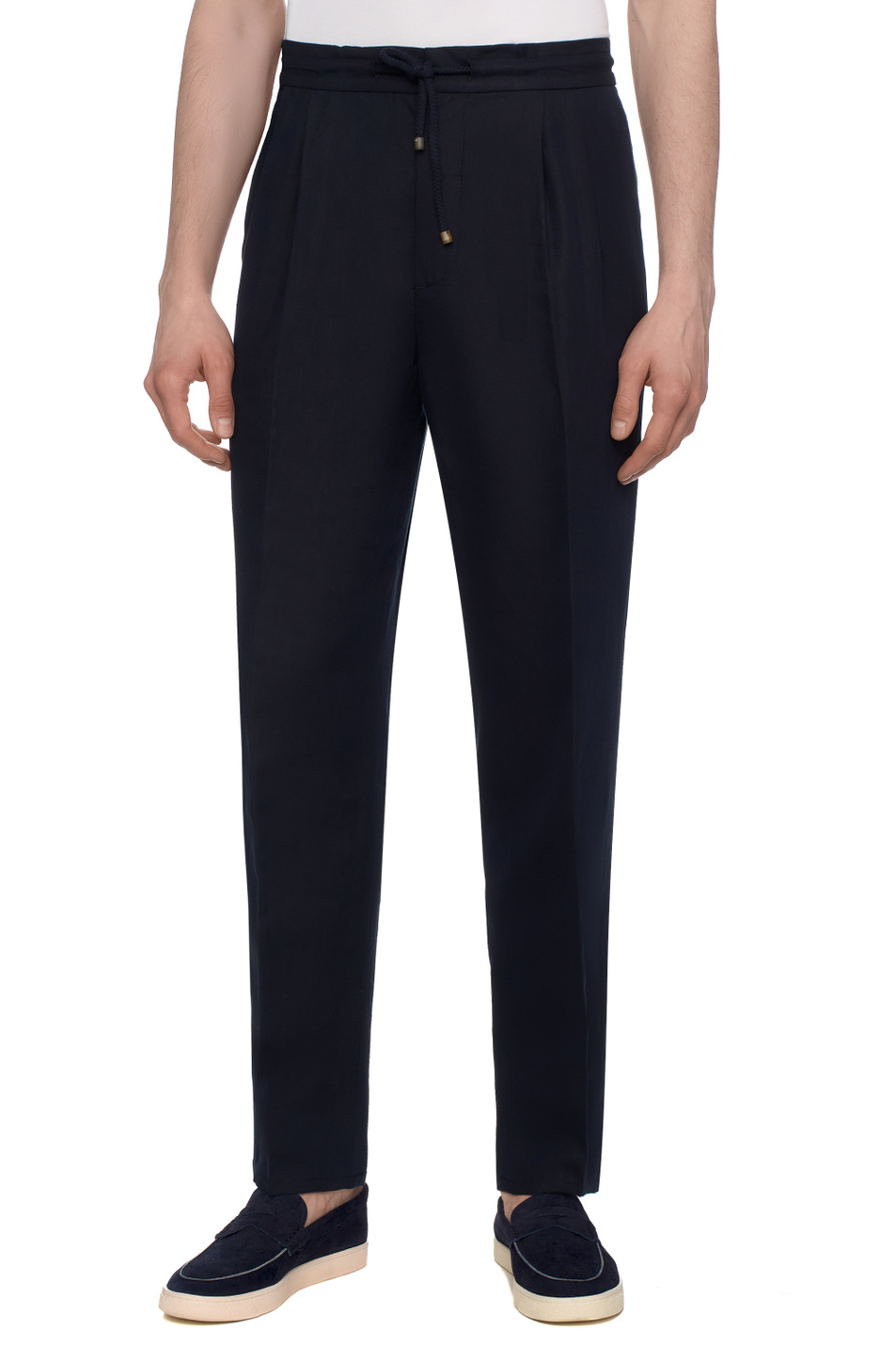 Брюки свободного кроя с эластичным поясом и регулируемой кулиской обеспечивает отличную посадку и свободу движений. Потайная застежка спереди придает брюкам элегантный вид, а боковые косые карманы и прорезные карманы сзади добавляют функциональности. Двойная складка спереди и зауженные штанины создают утонченный силуэт, подчеркивающий вашу индивидуальность. Изготовленные из высококачественного материала, состоящего на 56% из льна и на 44% из хлопка, эти брюки обеспечивают отличную воздухопроницаемость и комфорт в течение всего дня.