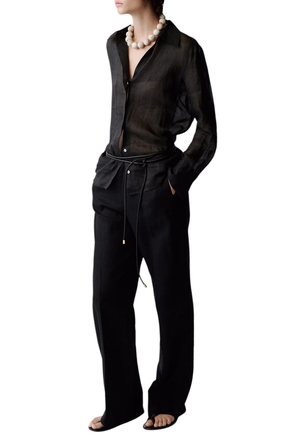 Прямой крой. Средняя посадка. Эластичный пояс с кулиской.