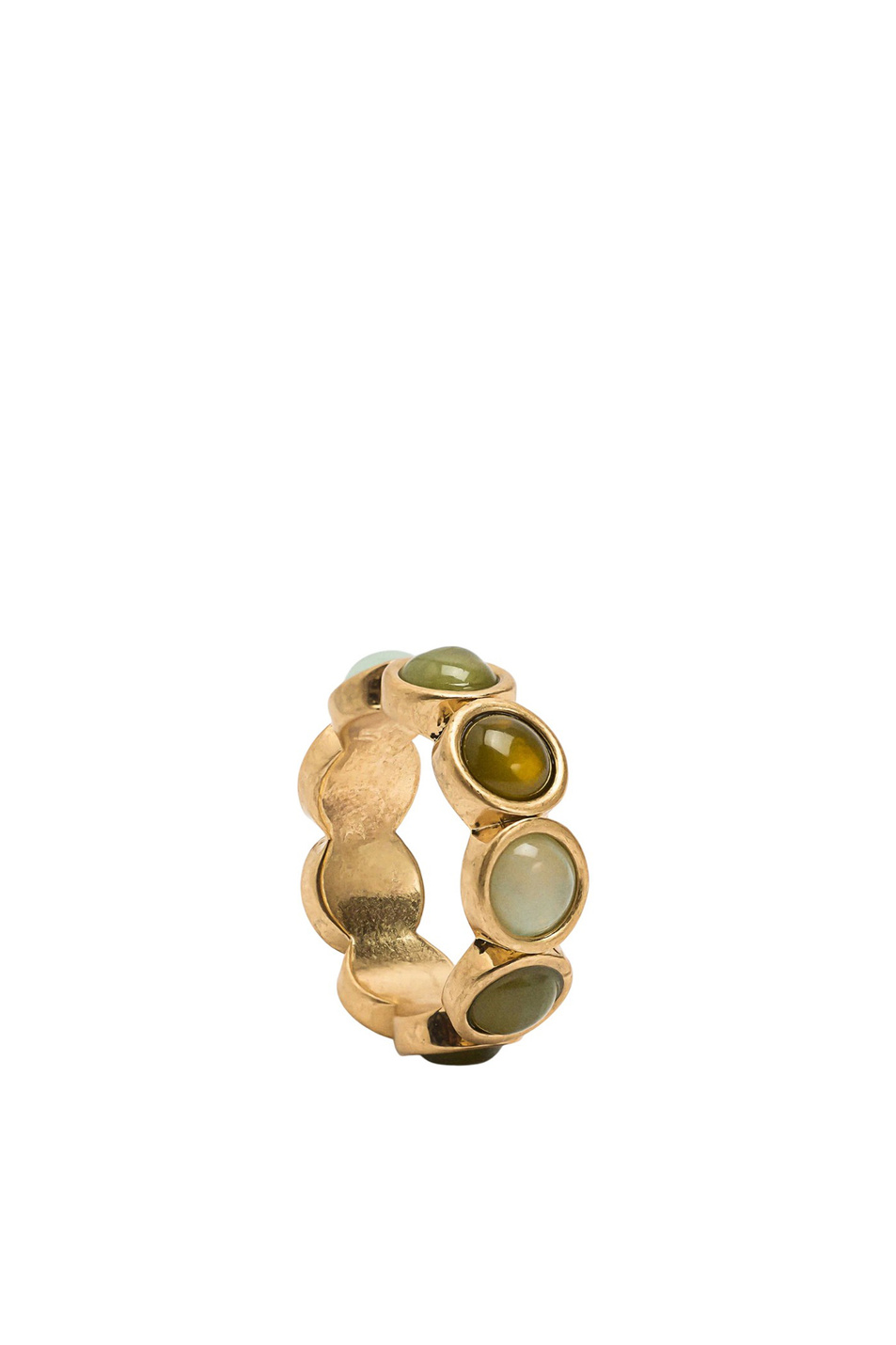 Кольцо с разноцветными круглыми кристаллами в градиентном стиле.